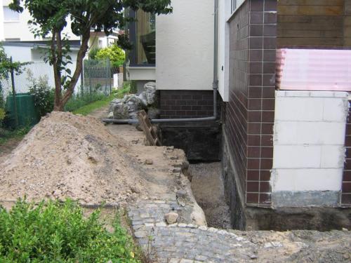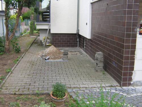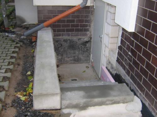 Referenz 10: Kellerabgang (Juli bis Oktober 2013)Ausheben der Baugrube mit dem Minibagger.Einbau von Kellertür.Fach- und sachgerechtes herstellen von Treppenabgang mit Betonfertigteilstufen.Herstellen der Bodenplatte sowie der Wand aus wasserundurchlässigem Stahlbeton.