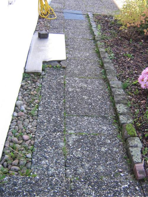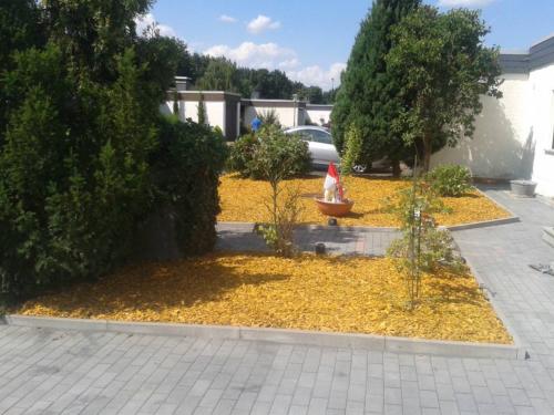 und durch Dekor-Rindenmulch ersetzt. Der alte Pflasterbelag des Vorgartens