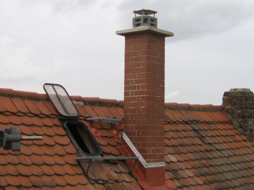 Referenz 8: Schornsteinkopf (August 2011)20112013Gemauerter Schornsteinkopf in Klinkeroptik, mit einer Betonabdeckplatte, Überstand inkl. Wassernase und einen Schornstein-Aufsatz.Außerdem wurde noch eine Schornstein-einfassung mit Überhangstreifen und Lauf-rostanlage montiert.